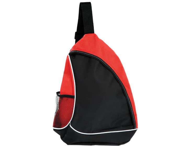 Backpack de tirante cruzado ajustable, con bolsa de malla lateral, mezcla de poliéster y material non woven.