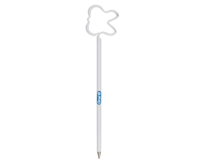 Bolígrafo delgado de plástico, moldeado de manera flexible para crear la figura de órgano humano como: muela. Ideal para el mercado farmacéutico y médico. Incluyen tapa translúcida.