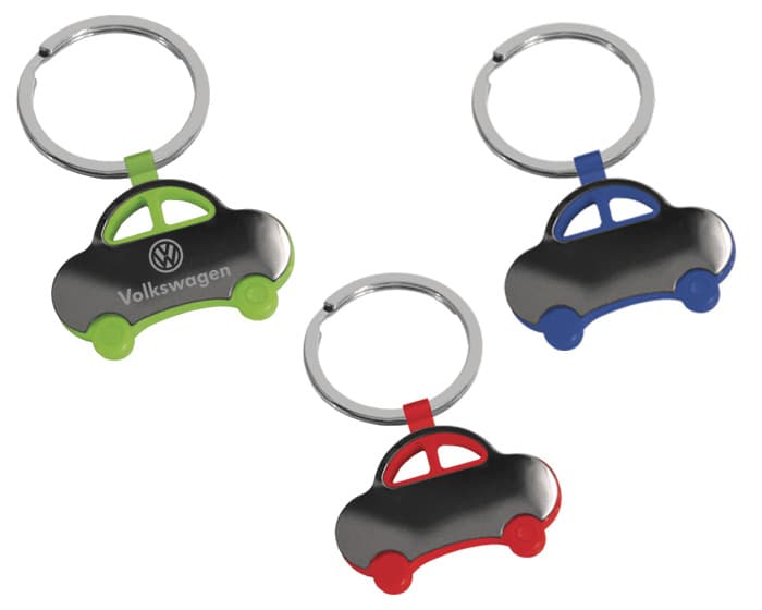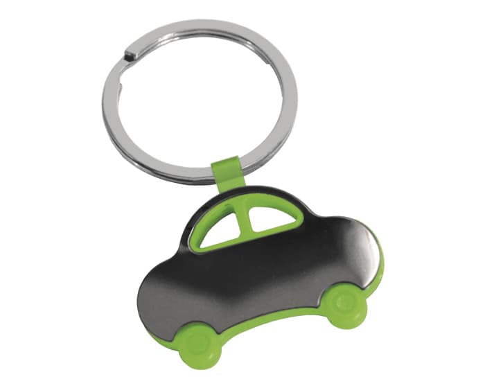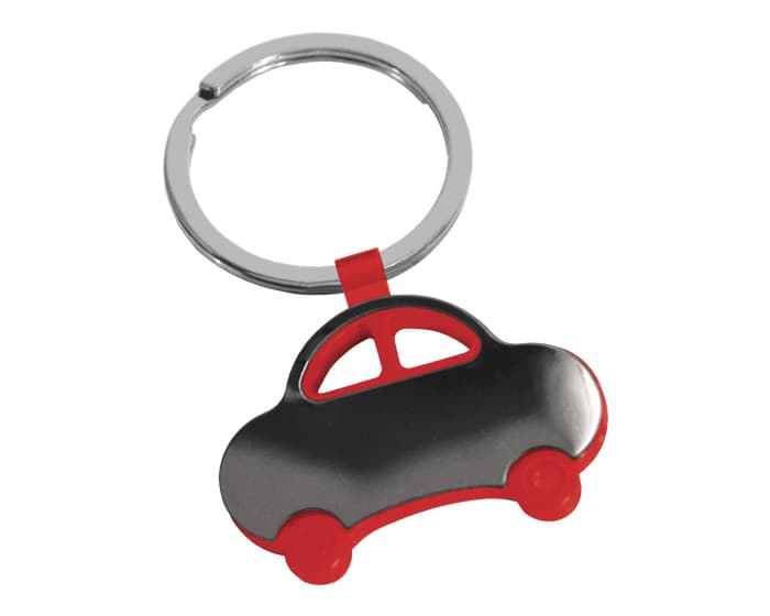 Llavero de plástico ABS en forma de auto, con arillo metálico reforzado. Llavero metalico con plastico en forma de auto y arillo reforzado.