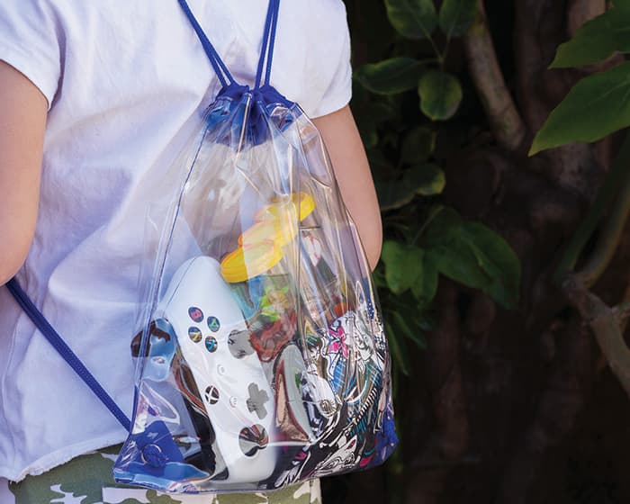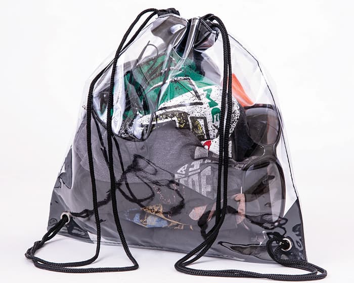 Morral transparente con jaretas y cordón de color.