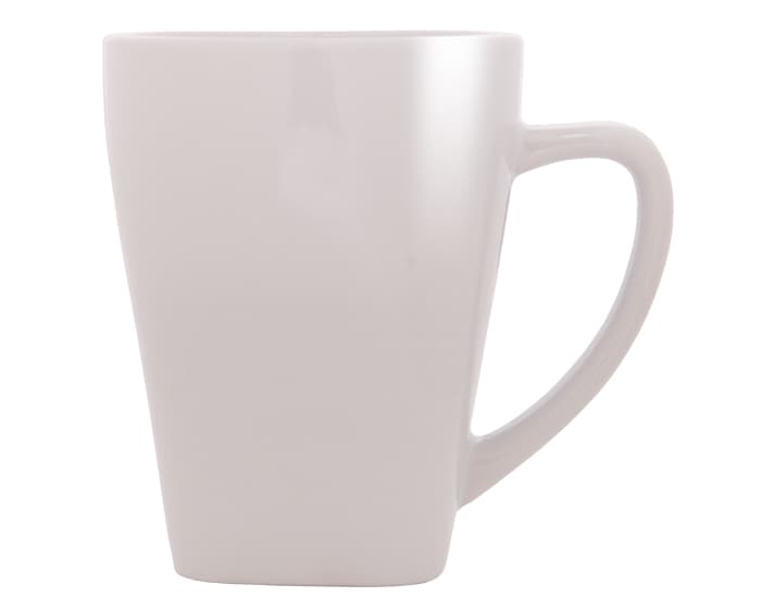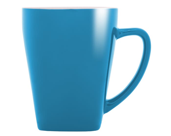 Taza con base cuadrada exterior a color, interior en blanco. CAP. 11 OZ.